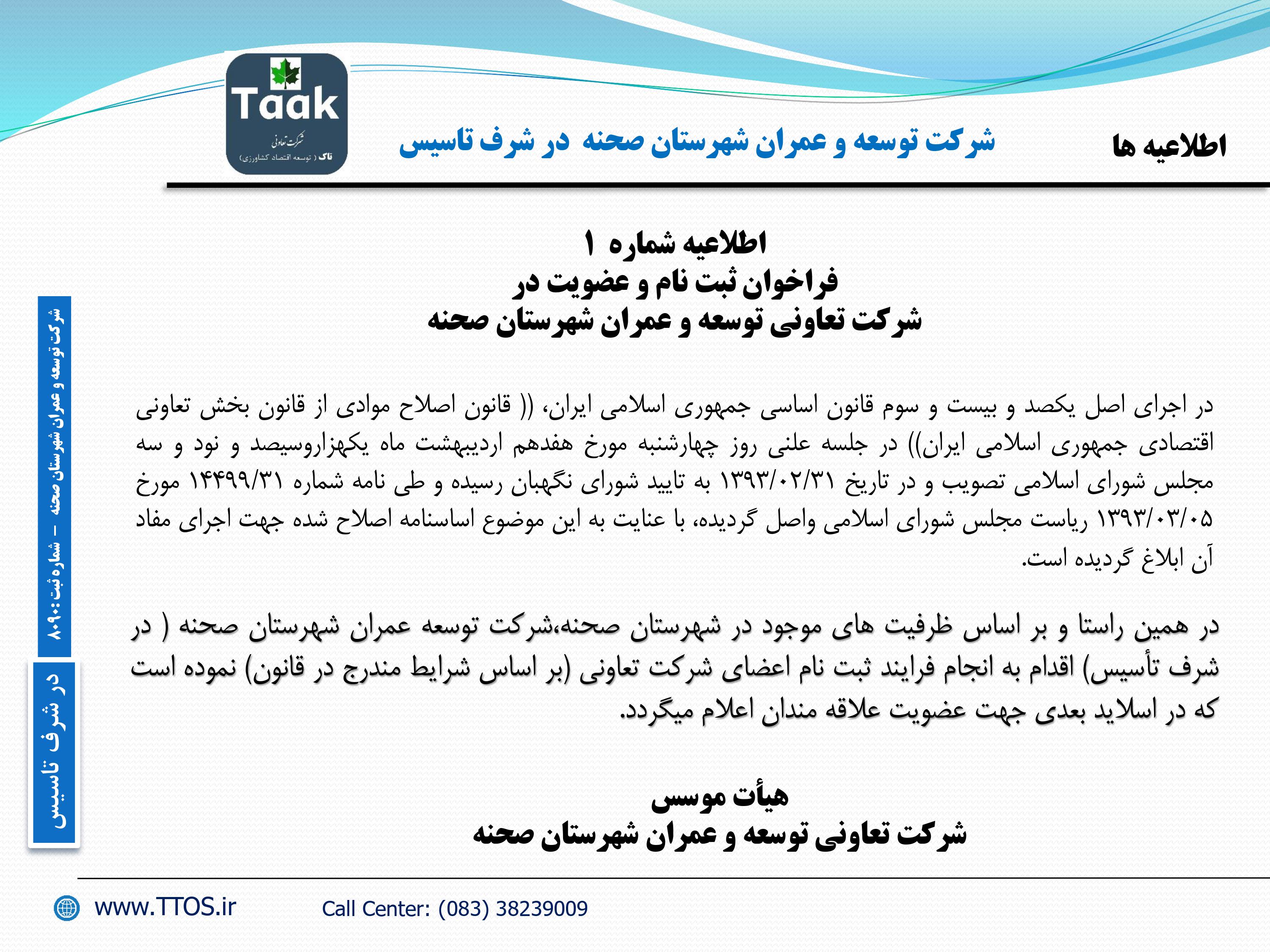 اطلاعیه شماره 1